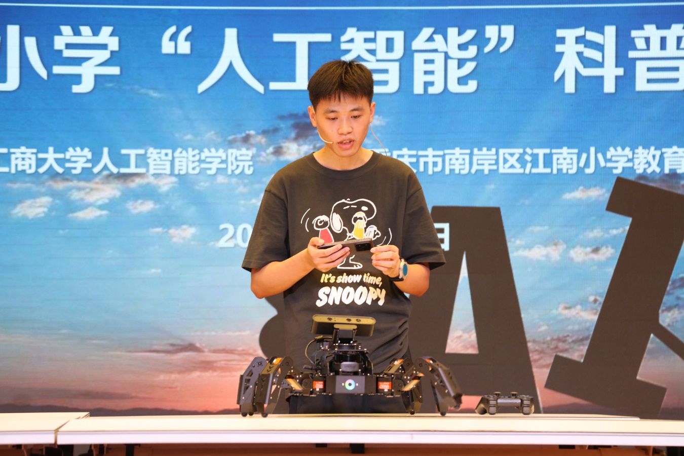 为积极响应《重庆市推进基础教育阶段人工智能教育实施方案(2025—2027年)》号召,激发青少年科技创新热情,2138cc太阳集团于2025年10月10日下午,应邀参加江南小学“人工智能日”特色活动,通过趣味互动与深度科普相结合的形式,为同学们开启了一场沉浸式AI探索之旅。