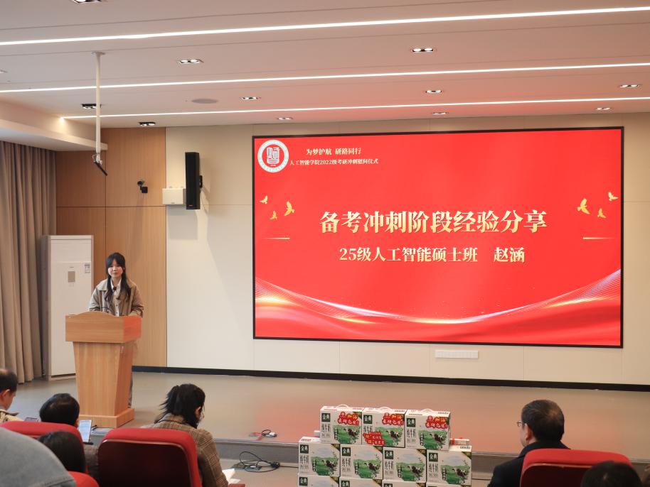 25级研究生代表赵涵作备考冲刺阶段经验分享。她结合自身备考经验,建议同学们在最后一个月中要把握重点,聚焦高频考点,吃透核心知识点,用套卷练习把握答题速度与节奏。同时,要做好心理调节,以平稳心态积极面对备考中的各种焦虑与压力,以稳扎稳打提升应试能力。
