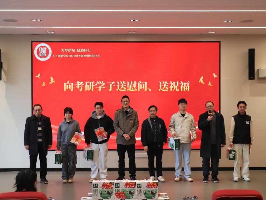伴着温馨的旋律,学院领导和老师们共同为考研学生送上慰问品,并逐一用话语表达深情祝福。考研学生代表余深平发言,表示将带着学校的关怀和鼓励,怀揣梦想奔赴考研之约,用奋力拼搏书写无悔青春!