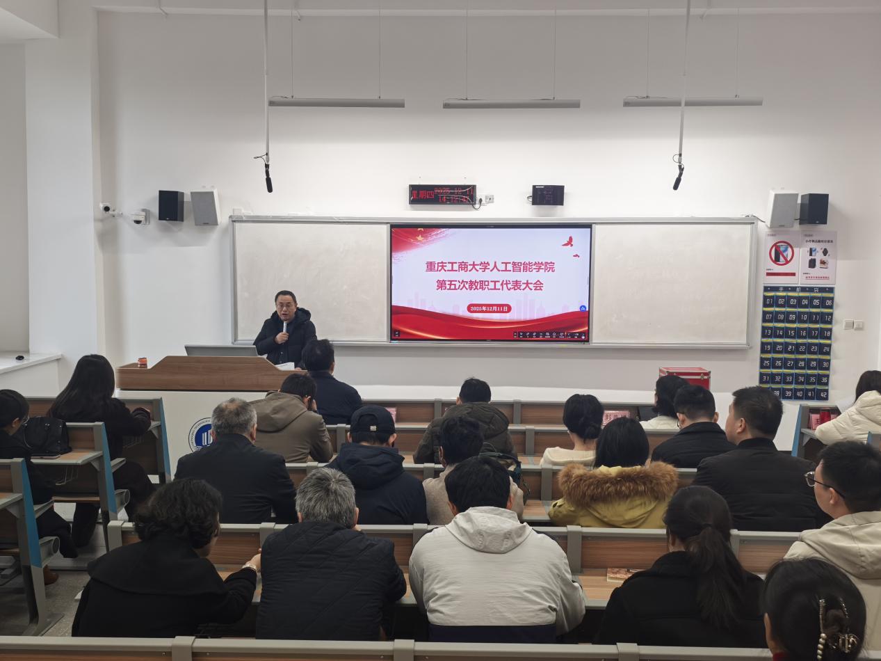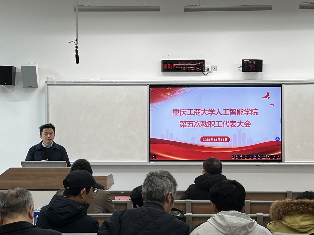 学院党委副书记、院长申渝同志作了题为《深化“智能+”商工融合,夯实高质量发展新根基》的工作报告。他指出,2025年是学院学科专业建设年,在教学科研、人才培养及国际交流等方面取得显著成效,学院顺利完成茶园新校区搬迁。学院获重庆市教学成果奖及多项省部级科研项目,成功举办EAI第15届移动网络与管理国际学术会议;学生在“挑战杯”及中国国际大学生创新大赛中斩获多项国奖,育人成果丰硕。展望2026年,学院将紧密对接国家战略与重庆市“33618”现代制造业集群体系,重点培育电子信息专业博士点及“人工智能”与“智能科学与技术”学科硕士点,以“智能+”商工融合为核心,强化有组织科研,优化师资队伍,全力推动学院事业高质量发展。