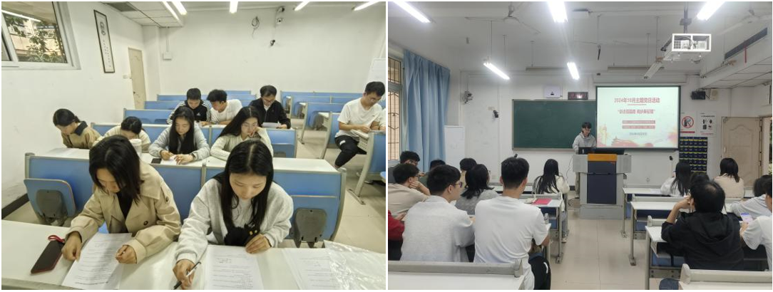 为庆祝中华人民共和国成立 75 周年,2024年10月30日中午12:20,2138cc太阳集团研究生党支部在慧智楼90201教室开展主题为“奋进强国路 阔步新征程”的10月主题党日活动。本次活动由党支部书记邹润玲主持,党支部第四小组同志领学,全体党员同志参加。