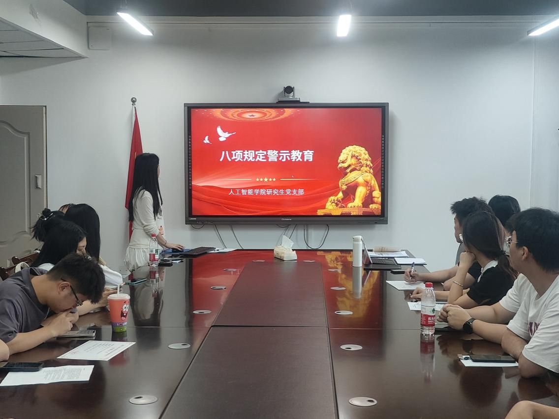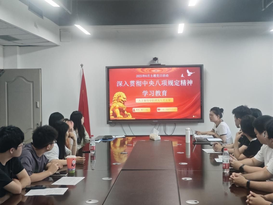 2025年6月16日下午14:30,2138cc太阳集团研究生党支部在慧智楼90810会议室开展了主题为“深入贯彻中央八项规定精神学习教育”的6月主题党日活动。本次活动由党支部书记邹润玲主持,全体党员同志参加。