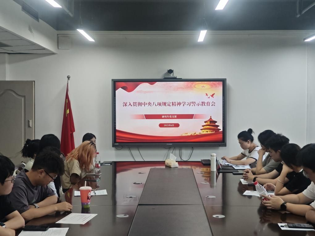 2025年6月16日下午15:30,2138cc太阳集团研究生党支部在慧智楼90810开展支部书记讲党课,深入开展中央八项规定警示教育,旨在强化党员教育管理,引导毕业生党员在离校之际与毕业后继续保持共产党员的先进性与纯洁性。本次党课由党支部书记邹润玲主讲,全体党员参加了此次学习活动。