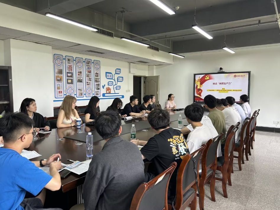 支部活动最后,与会党员针对“新质生产力的提出,带给研究生党员哪些思考和机遇”展开了热烈的讨论。党支部书记邹润玲提出全体党员要加强科学基础研究,促进多学科交叉融合,以新政策为立足点,提前做好就业职业规划。努力将技术创新和应用创新协同发展,为实现中华民族伟大复兴贡献自己的力量。