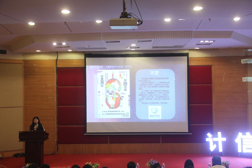为传播青春正能量,培养学生的家国情怀、引导学生树立正确的消费观,计算机科学与信息工程学院于12月17日晚7点在7200学术报告厅举办第二届视觉设计大赛。本次视觉设计大赛分为PPT组和海报组,PPT组以“新四大发明”为主题,展示中国现代化建设取得的成就。海报组以“时贷”为主题,倡议大学生拒绝“校园贷”。
