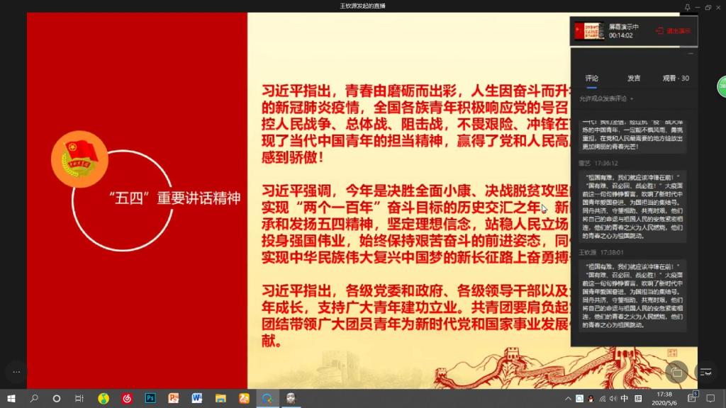 此次线上团日活动覆盖全院所有团组织。主题团日坚持以理想信念教育为核心,突出了思想教育的内涵,明确了新时代青年的责任担当,使“爱国、进步、民主、科学”的五四精神根植于广大青年学生的心中。