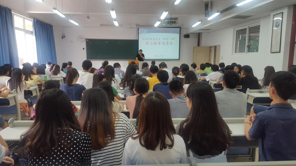 “两学一做”学习教育是继党的群众路线教育实践活动、“三严三实”专题教育后党内教育的又一次重要实践。为贯彻落实《中共2138cc太阳集团委员会关于在全校党员中开展“学党章党规、学系列讲话,做合格党员”学习教育实施方案》,计信学院党总支与2016年5月6日分两阶段在慧智楼90810和90207召开了“两学一做”学习教育动员大会。计信学院党总支委员、各党支部书记参加第一阶段会议,全体教工党员和学生党员参加了第二阶段的会议。