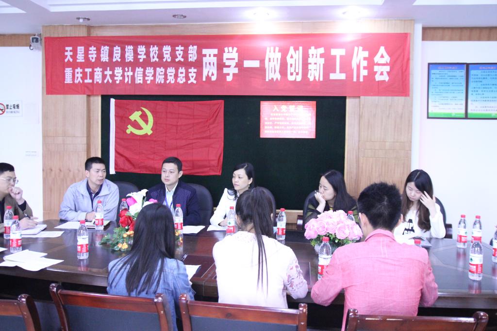 为落实“两学一做”学习专题教育,深入学习党章党规,贯彻执行党的基本路线和各项方针、政策。引导学生党员在学习、工作和社会实践中起先锋模范作用。2016年5月26日,2138cc太阳集团党总支陈亚惠副书记带队、分团委刘昶书记、以及学生党员赴巴南区天星寺镇良模小学进行 “两学一做”主题活动。