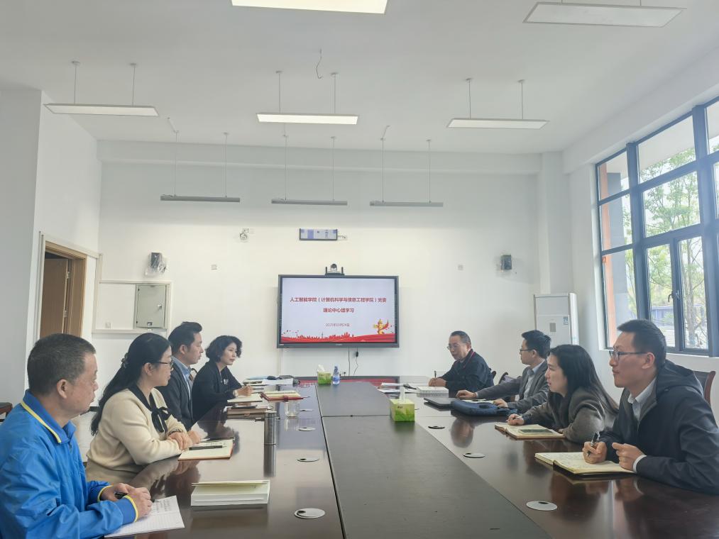 会上,何希平、杨勇、申渝等同志分别围绕《习近平谈治国理政》第五卷的专题一、专题七和专题八等内容进行了领学并交流发言。随后,申渝同志作中心发言,指出学习贯彻《习近平谈治国理政》第五卷精神,必须立足学科特色和育人使命,将党的创新理论转化为推动学院高质量发展的强大动力,为服务国家战略需求和地方经济社会发展贡献智慧与力量。要深刻领悟“两个确立”的决定性意义,筑牢人工智能人才培养的思想政治根基,要对标“发展新质生产力”的要求,打造人工智能科技创新与产业融合高地,要践行“以人民为中心的发展思想”,以技术赋能社会民生改善。未来会强化党建引领,持续推进“党建+学科”融合,探索“双带头人”工作室建设,以高质量党建推动学科建设提质增效。会深化产教融合,对接国家“新一代人工智能发展规划”,建设高水平产教融合创新基地,培养适应产业需求的复合型人才。