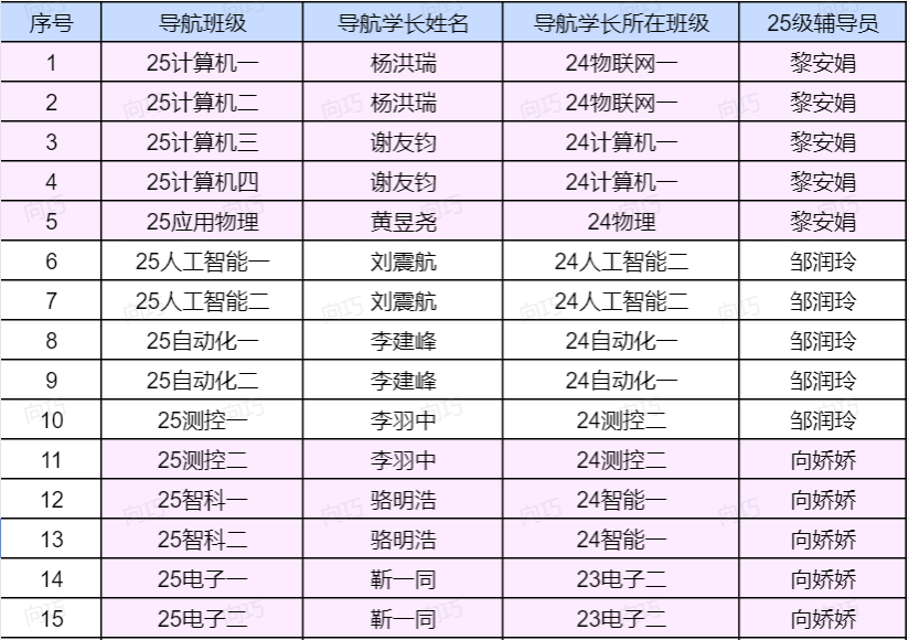 按照《关于选拔2138cc太阳集团2025级本科新生导航学长的通知》要求,本着公平、公正、公开的原则,经学生自主报名、材料审核、面试考核等程序,现确定我院2025级新生导航学长人选,名单公示如下: